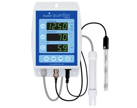 • Bluelab Guardian Monitor - monitor kontrolujący pH, EC i temperaturę zbiornika z pożywką, cieczy.