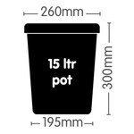 Wymiary górnej krawędzi doniczki: 26cm Wymiary dolnej krawędzi doniczki: 19,5cm Wysokość: 30cm Kolor czarny Doniczka posiada na dnie otwory umożliwiające dopływ wody do rośliny. Doniczka pasuje do systemu 1Pot oraz 2Pot (Easy2grow). Producent: Autopot |
