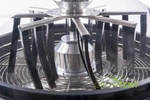 pokrytej siatką. Po ponownym umieszczeniu pokrywy i użyciu korby (pokrętła) kwiaty zaczną krążyć po siatkowatej pokrywie, delikatnie ocierając o nią. Siatka zbudowana jest z drobnych drucików oraz ostrza, które zaczynają szybko wibrować i ucinają liście, które wpadają do dolnego pojemnika. Dla lepszego efektu pokrywa powinna zostać odsunięta od siatki, wtedy uzyskamy grubsze cięcia.