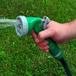 Zraszać pistoletowy do węża ogrodowego z adapterem zatrzaskowym. Tworzywo odporne na mróz i nietłukące. Regulacja strumienia wody w 5 ustawieniach.