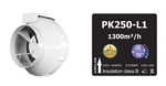 Prima Klima PK250-L1 to wysokowydajny wentylator kanałowy rzędowy wyposażony w silnik prądu przemiennego ebm - papst z łopatkami wygiętymi do tyłu, który został optymalnie dopasowany do obudowy.