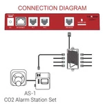 Stacja alarmowa CO2 AS-1 jest alarmem dźwiękowym i wizualnym przeznaczonym do montażu wewnątrz lub na zewnątrz monitorowanego pomieszczenia i włącza alarm (zarówno widoczny, jak i dźwiękowy) w przypadku przekroczenia normalnego lub bezpiecznego poziomu CO2. Może być połączony z niskopoziomowymi lub wysokopoziomowymi czujnikami CO2 lub może być połączony z obydwoma czujnikami w celu uzyskania pełnej redundancji.