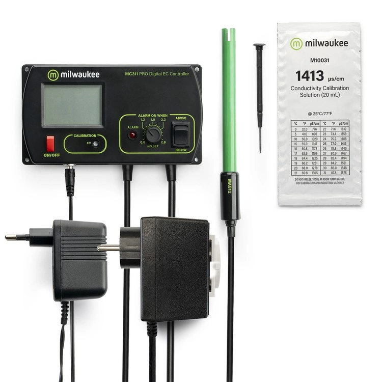 Zestaw MC745 zawiera monitor MC311 EC i dwie pompy dozujące MP810 do automatycznego monitorowania i precyzyjnej regulacji poziomów EC. Po prostu ustaw parametry EC i pozwól sterownikowi EC Milwaukee i pompom zrobić resztę!