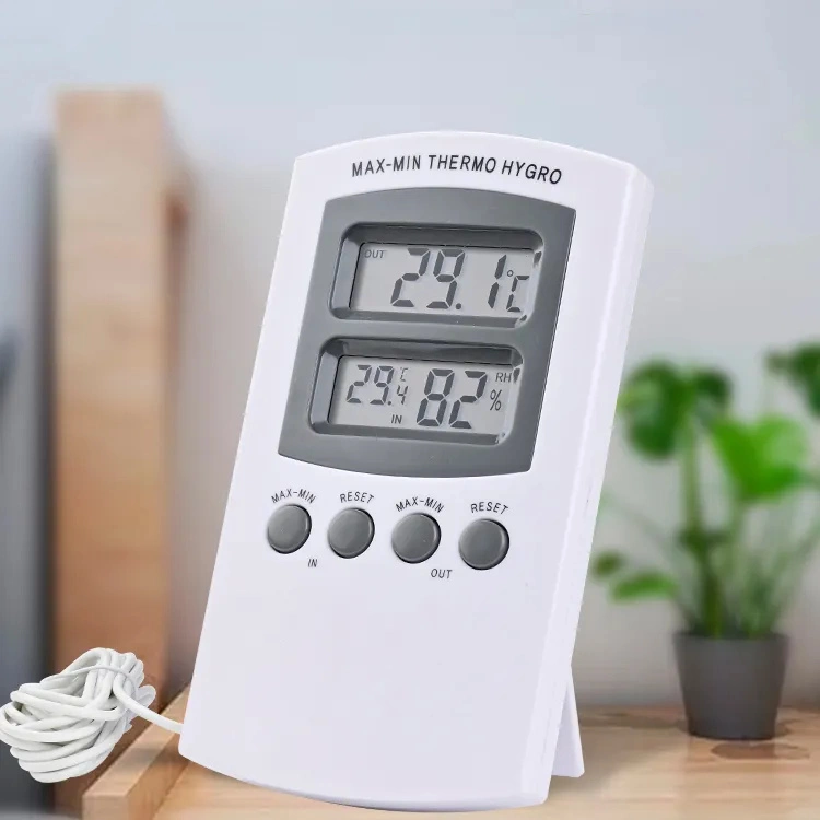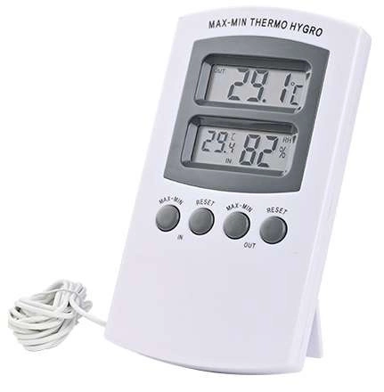 Pozwala mierzyć temperaturę wewnątrz i na zewnątrz pomieszczenia dzięki dołączonej czujce.