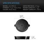 Wysoce innowacyjna podstawa samonawadniająca stanowi uzupełnienie doniczek materiałowych wykonanych z włókniny, które umożliwiają przenikanie i wsiąkanie wody. Każdy stojak na rośliny dostarczający wodę w tym 4-paku może pomieścić okrągłe doniczki z tkaniny o pojemności do ok. 5 galonów/19 L i wadze do 45 kg.