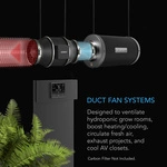 Inteligentny, wbudowany wentylator kanałowy zaprojektowany z myślą o cichej wentylacji pomieszczeń do uprawy hydroponicznej, wspomaganiu ogrzewania/chłodzenia pomieszczeń, cyrkulacji świeżego powietrza, odprowadzaniu powietrza z różnego rodzaju projektów. Dzięki wbudowanej konstrukcji o mieszanym przepływie wentylator kanałowy może utrzymać przepływ powietrza nawet w zastosowaniach o wysokim ciśnieniu statycznym. Jest zbudowany z silnika EC sterowanego PWM, co zapewnia cichą i energooszczędną pracę. Skrzynię silnika zawierającą wirnik i łopatki wentylatora można odłączyć od zamontowanej ramy, co ułatwia czyszczenie i konserwację. Zawiera inteligentny kontroler z dynamicznym klimatem i programowaniem opartym na czasie i może łączyć się z wieloma urządzeniami UIS. Ten produkt jest częścią platformy UIS™ obejmującej urządzenia do uprawy i inteligentne kontrolery, zaprojektowane tak, aby integrować się ze sobą w celu uzyskania idealnego środowiska.