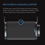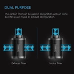 Filtr węglowy o wysokim przepływie powietrza, zaprojektowany w celu eliminacji zapachów i substancji chemicznych, wykorzystujący najwyższej jakości wkład z węgla drzewnego Australian Virgin. Ten wkład węgla aktywnego ma pory o wielkości RC412, które umożliwiają wysoką szybkość adsorpcji i dłuższą żywotność. Jego wytrzymała konstrukcja składa się z aluminiowych kołnierzy i dwustronnej siatki ze stali ocynkowanej z odpornym na rdzę wykończeniem w kolorze brązu, odpornym na korozję i wysoką wilgotność. Filtr węglowy może być używany z wentylatorem w konfiguracjach wlotowych i wylotowych, a jego kołnierze można odwrócić, aby jeszcze bardziej wydłużyć jego żywotność. Zawiera dwie tkaniny z filtrem wstępnym, które można prać w pralce, aby zapobiec pozostałościom węgla, oraz dwa paski do zawieszania ułatwiające instalację.