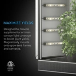Magnetycznie montowane na stelażach i płótnach namiotów uprawowych przy użyciu dołączonych stalowych prętów. Zapewniają rozszerzone pokrycie obszarów między roślinami, do których Twoje główne światła mają trudności. Każdy pasek świetlny LED do uprawy roślin jest zbudowany z oryginalnych diod Samsung LM301H EVO, najnowszej technologii oświetlenia ogrodniczego, która emituje intensywną jasność przy większej wydajności. Ta wydajność jest lepsza od wiodących diod Samsung LM301H i LM301B, a także Bridgelux 3030 i innych diod LED poprzedniej generacji. Diody EVO pomagają poprawić wzrost roślin, emitując lepszą jakość światła i większą moc światła na diodę, z wyższym niebieskim widmem i większą wydajnością w porównaniu z diodami innymi niż EVO. Możesz również podłączyć dodatkowe paski świetlne do uprawy roślin, aby zwiększyć zasięg lub dodać więcej oświetlenia pomocniczego.