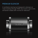 AC Infinity Inline Duct Silencer fi 150mm tłumik akustyczny do wentylacji - ocynkowana obudowa, podwójny kołnierz pochłaniający wibracje oraz redukująca hałas pianka neoprenowa w środku