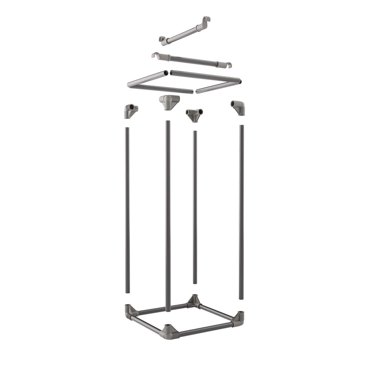 Trwała konstrukcja oparta na stalowym stelażu o grubości 16 mm została rozbudowana o nowe plastikowe złączki z logotypem, estetyczne rurki oraz gumowe logo. W standardzie okno obserwacyjne wykonane z folii PVC umożliwia szybką kontrolę roślin bez naruszania warunków wewnętrznych.