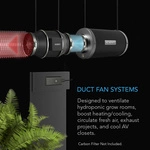 Ten cichy wentylator kanałowy jest popularny w różnych zastosowaniach, w tym w chłodzeniu pomieszczeń ze sprzętem AV, szaf, stojaków i szafek. Ze względu na niski poziom hałasu i zaawansowane funkcje sterowania jest również stosowany w różnych projektach związanych z cyrkulacją powietrza i wentylacją, w tym w pomieszczeniach i namiotach do uprawy hydroponicznej, łazienkach i strychach oraz w innych instalacjach.