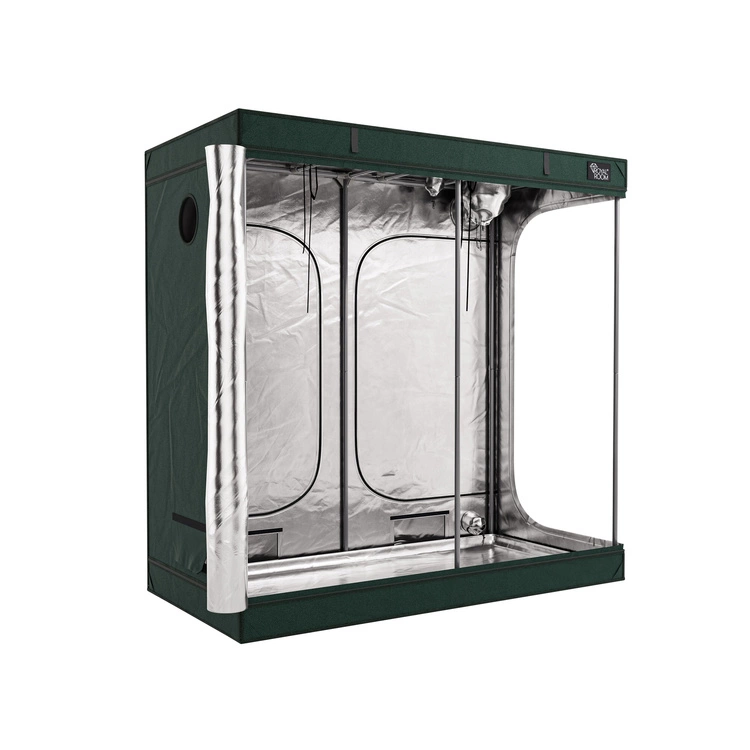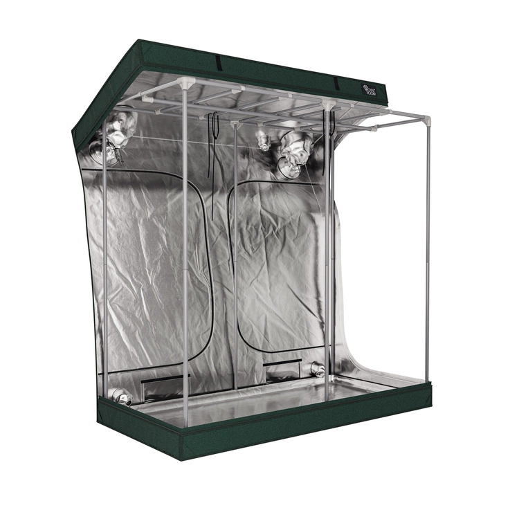 Trwała konstrukcja oparta na stalowym stelażu o grubości 19 mm została rozbudowana o nowe plastikowe złączki z logotypem, estetyczne rurki oraz gumowe logo. W standardzie okno obserwacyjne wykonane z folii PVC umożliwia szybką kontrolę roślin bez naruszania warunków wewnętrznych.