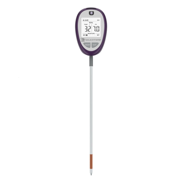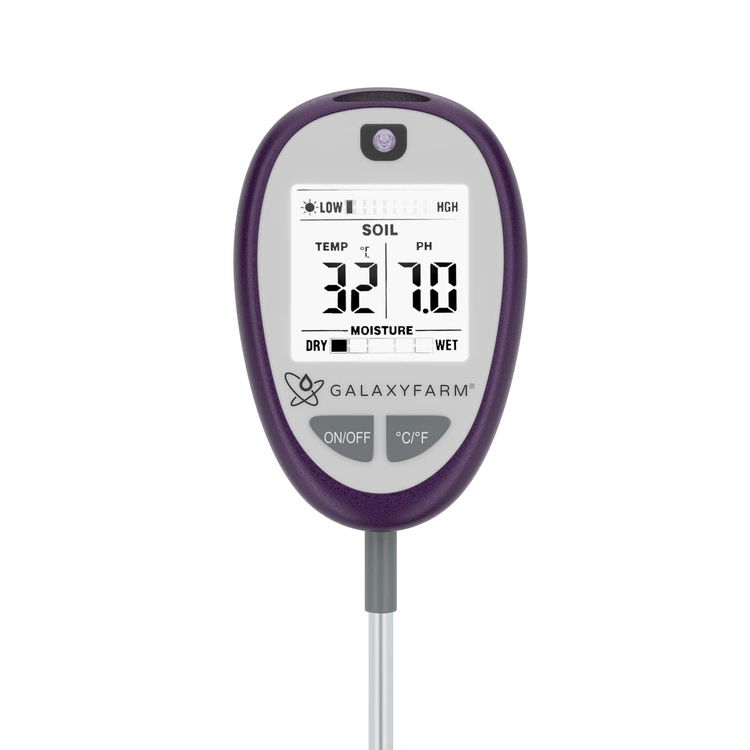 GALAXYFARM 4w1 to niezawodny tester gleby, który w jednym urządzeniu łączy aż cztery funkcje: pomiar pH, wilgotności, temperatury i nasłonecznienia. Dzięki niemu szybko sprawdzisz warunki, w jakich rosną Twoje rośliny, i łatwo dopasujesz podlewanie, nawożenie czy ustawienie światła.