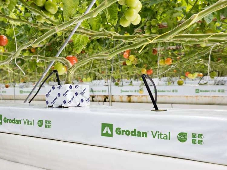 Kostka Plantop NG2.0 i mata Grodan Vital są oparte na tej samej technologii i dlatego są w pełni kompatybilne. Jednolita struktura gwarantuje stały rozwój korzeni, zarówno w kostce, jak i w macie przez cały sezon.